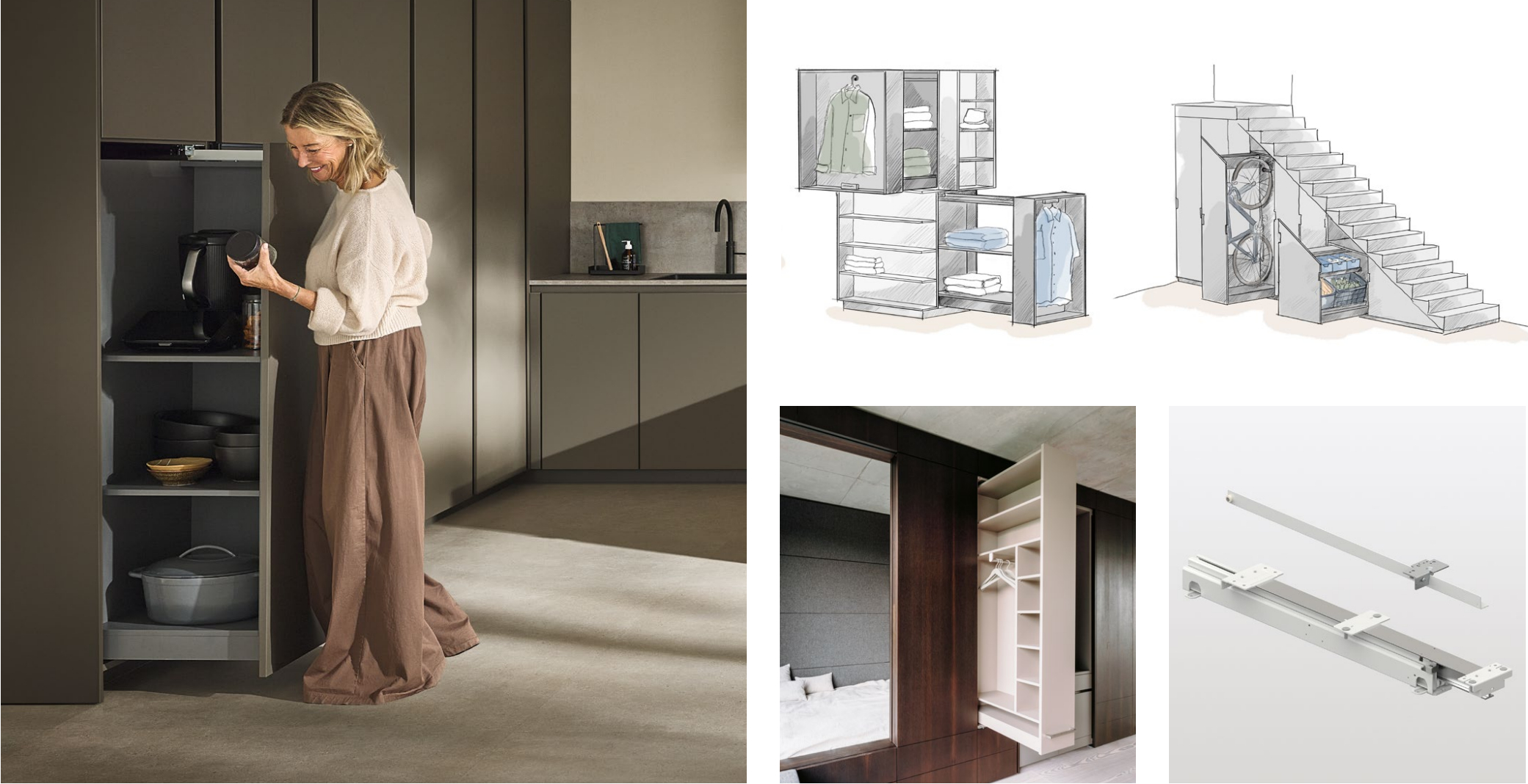 Trasforma le situazioni più difficili in uno spazio contenitivo organizzato, ideale per mobili estraibili creativi nel settore privato, pubblico o industriale. Undici varianti di lunghezza e diverse varianti di installazione con tecnologia a scomparsa offrono la massima libertà di progettazione.