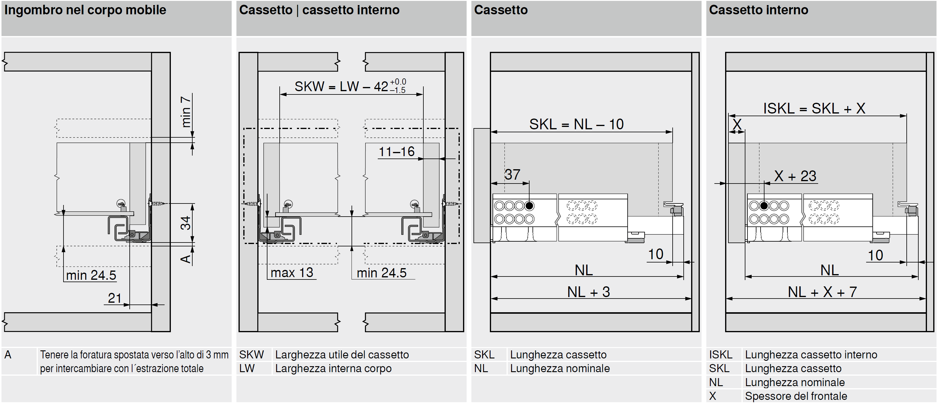 Estrazione parziale TANDEM a scomparsa con fine corsa morbido all’apertura e TIP-ON integrato, il supporto per l’apertura meccanico.