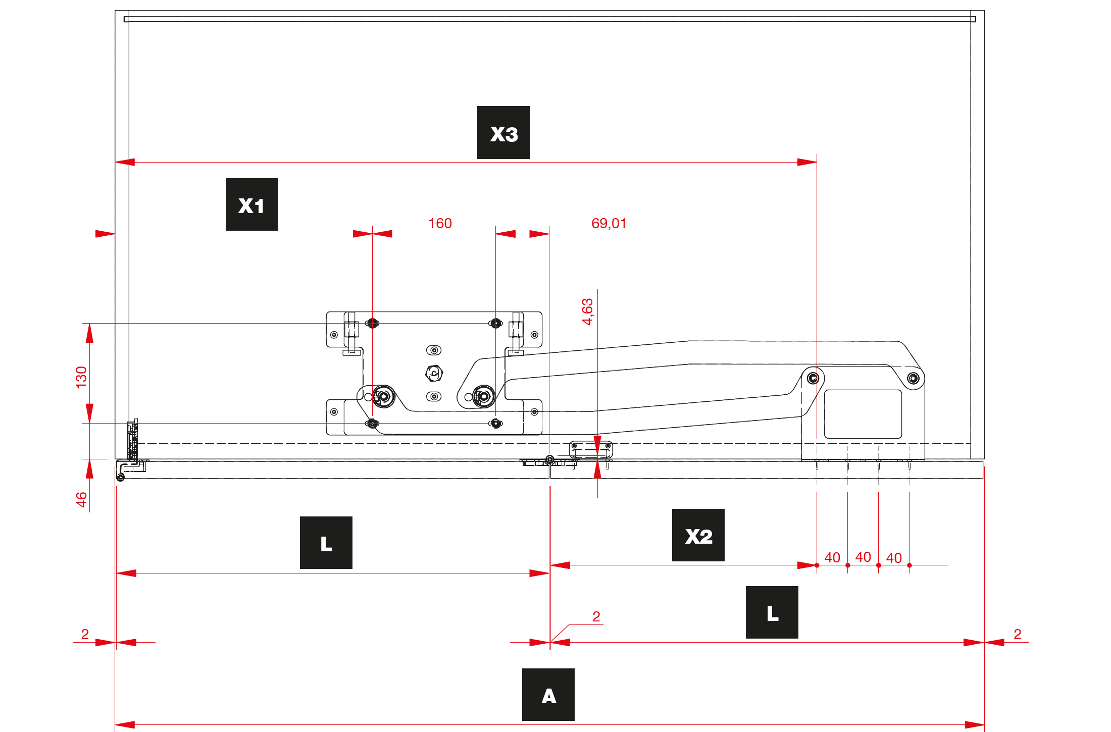Set pantografo reversibile e cerniere per realizzare una coppia di ante.